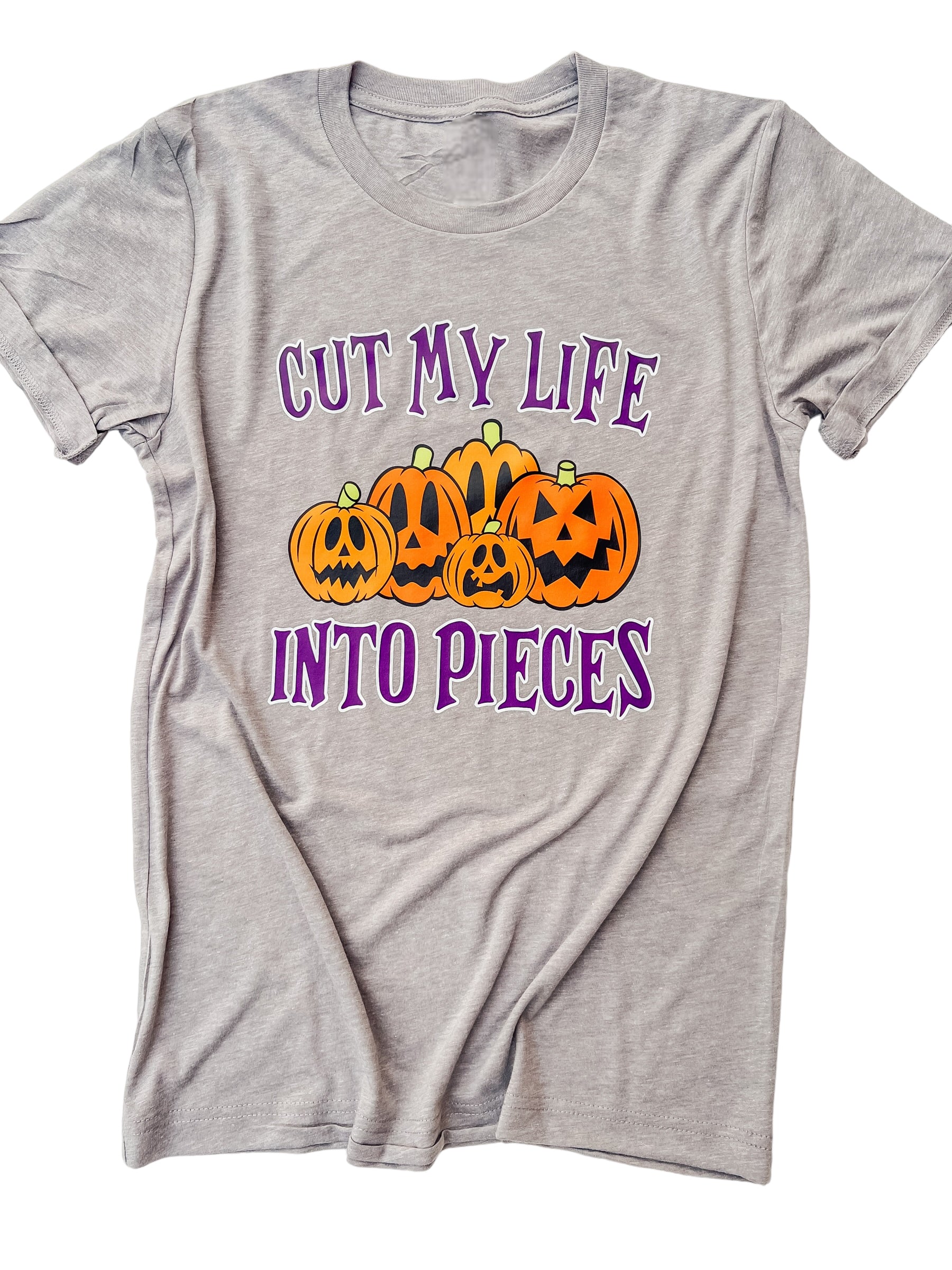 This spirited apparel piece features an artistic carving of a pumpkin, while also playing off the classic Papa Roach song. Cut My Life Into Pieces is perfect for any fan of the band or anyone looking for some rock-inspired fashion.