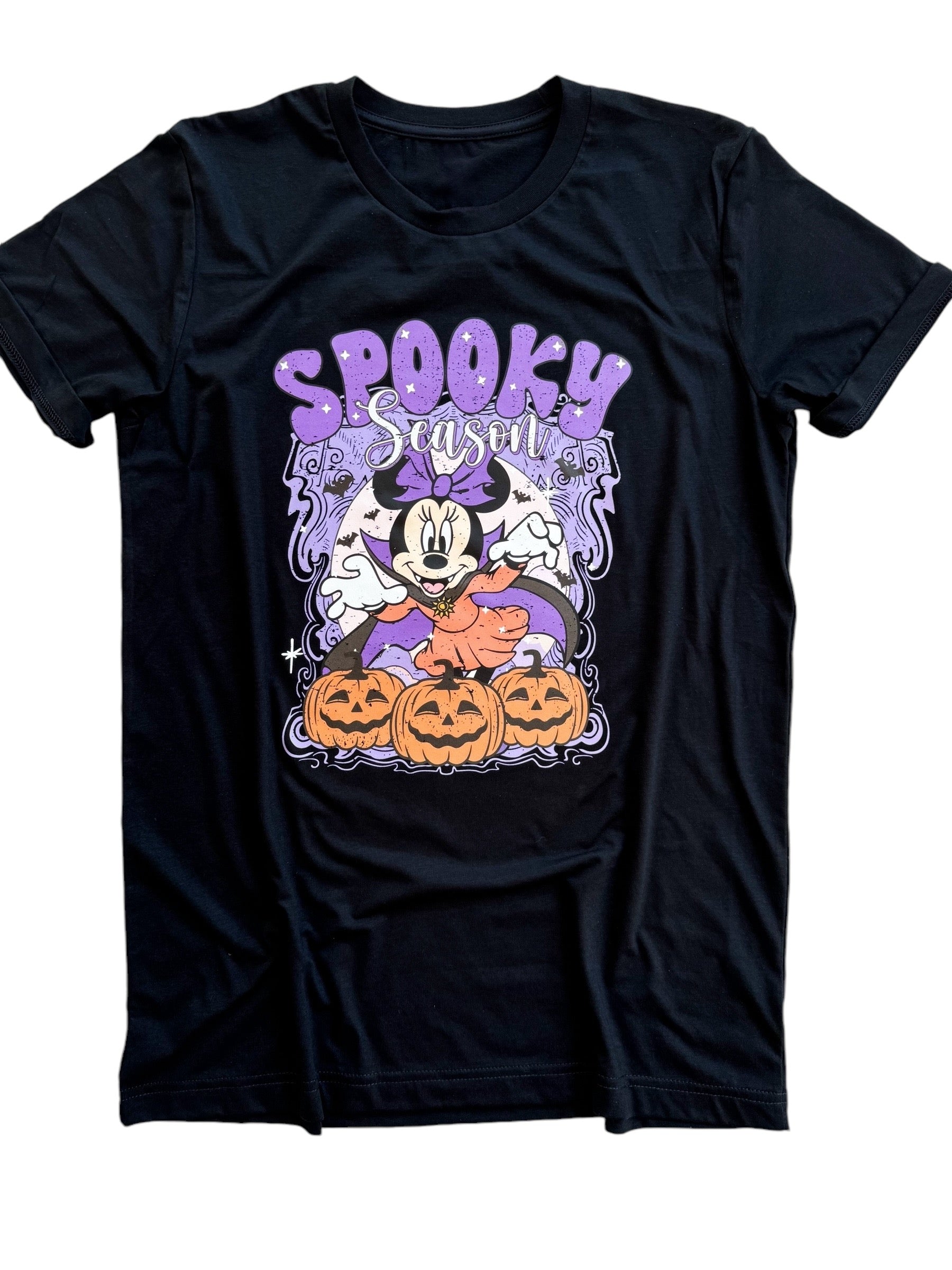 Get into the Halloween spirit with our Spooky Season Mouse shirt, inspired by everyone's favorite minnie mouse! This playful and quirky design is perfect for adding a little spooky fun to your wardrobe. Get yours now and celebrate the season with style.