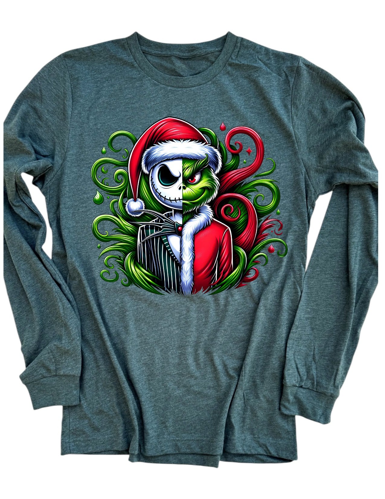 Unleash your inner holiday rebel with our Grinch Jack shirt! Featuring a unique design that combines the iconic Grinch and Jack Skeleton, this shirt is sure to make a statement. Get into the Christmas spirit with a touch of mischief and attitude. (Don't be a cotton-headed ninny muggins, add this to your wardrobe now!)