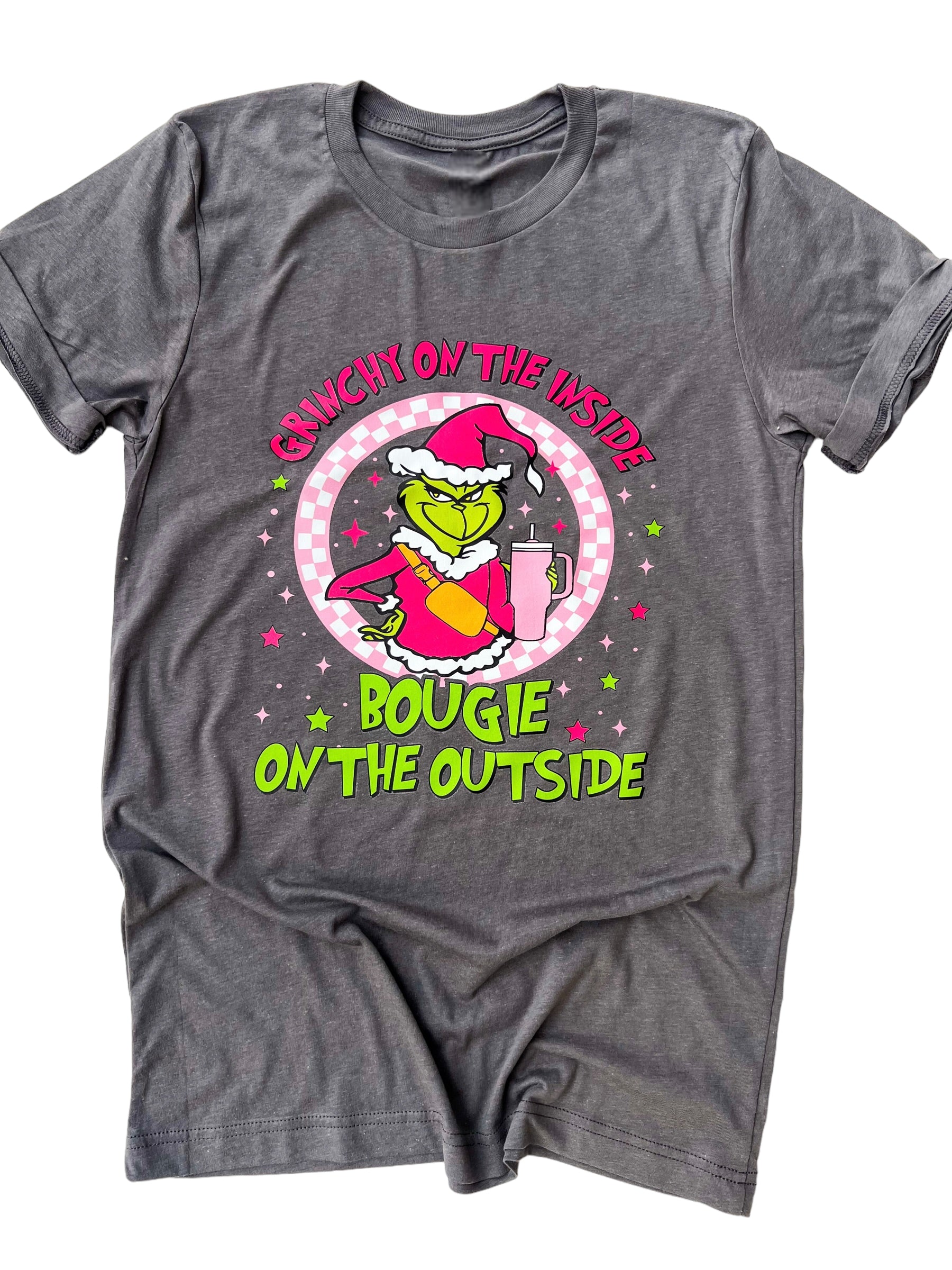 This tee is anything but basic! With a classic cut and bold design, it will make you look grinchy on the inside, but bougie on the outside. Featuring a stanley, fanny, and The Grinch himself, it's sure to stand out in any crowd. Get your hands on it today!