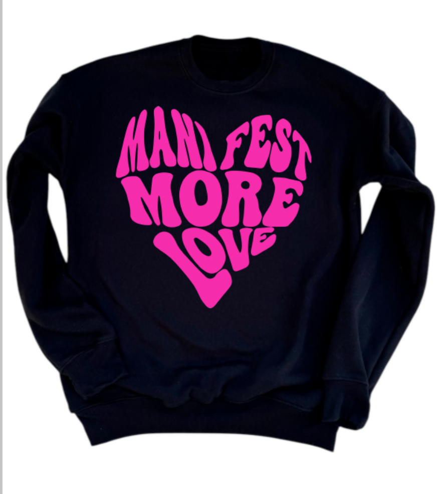 Radiate positivity with our Manifest More Love apparel! Featuring eye-catching front and back designs, this black collection comes in multiple shirt styles so you can pick your vibe. All in sleek black with a beautiful Magenta colored design, to express your commitment to attracting good energy and deeper connections. Whether you're a manifestation enthusiast or simply love wearing your heart on your sleeve, these versatile pieces fit seamlessly into any wardrobe. Find your perfect style and start manifesting those love vibes today.