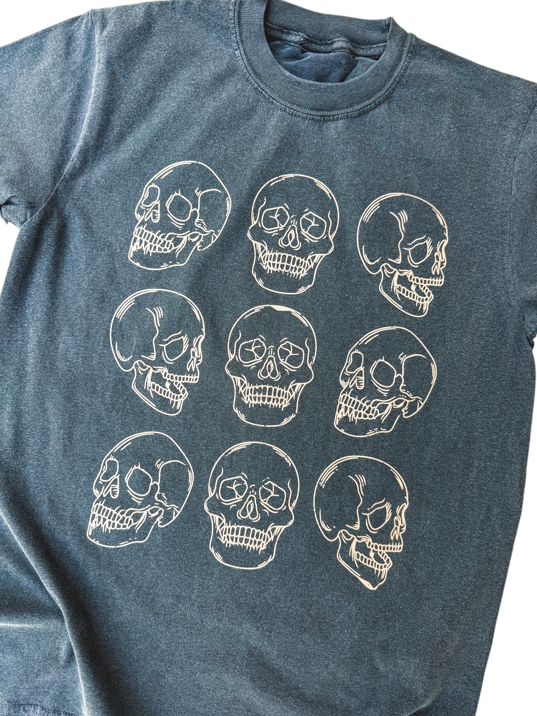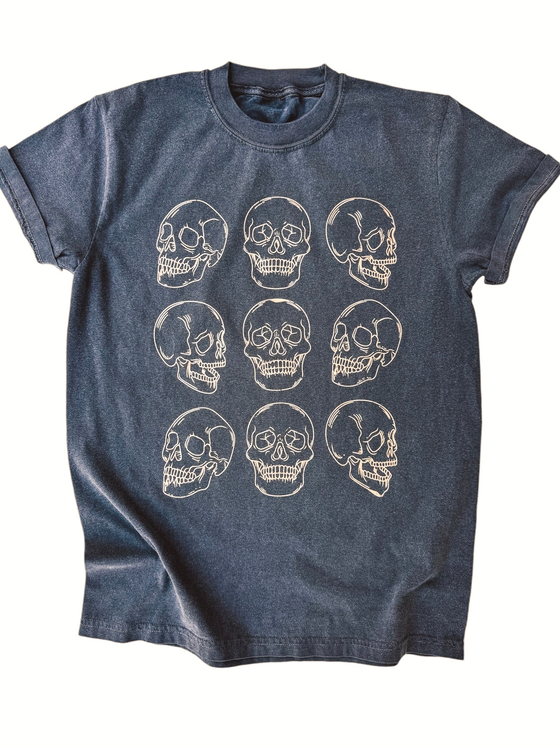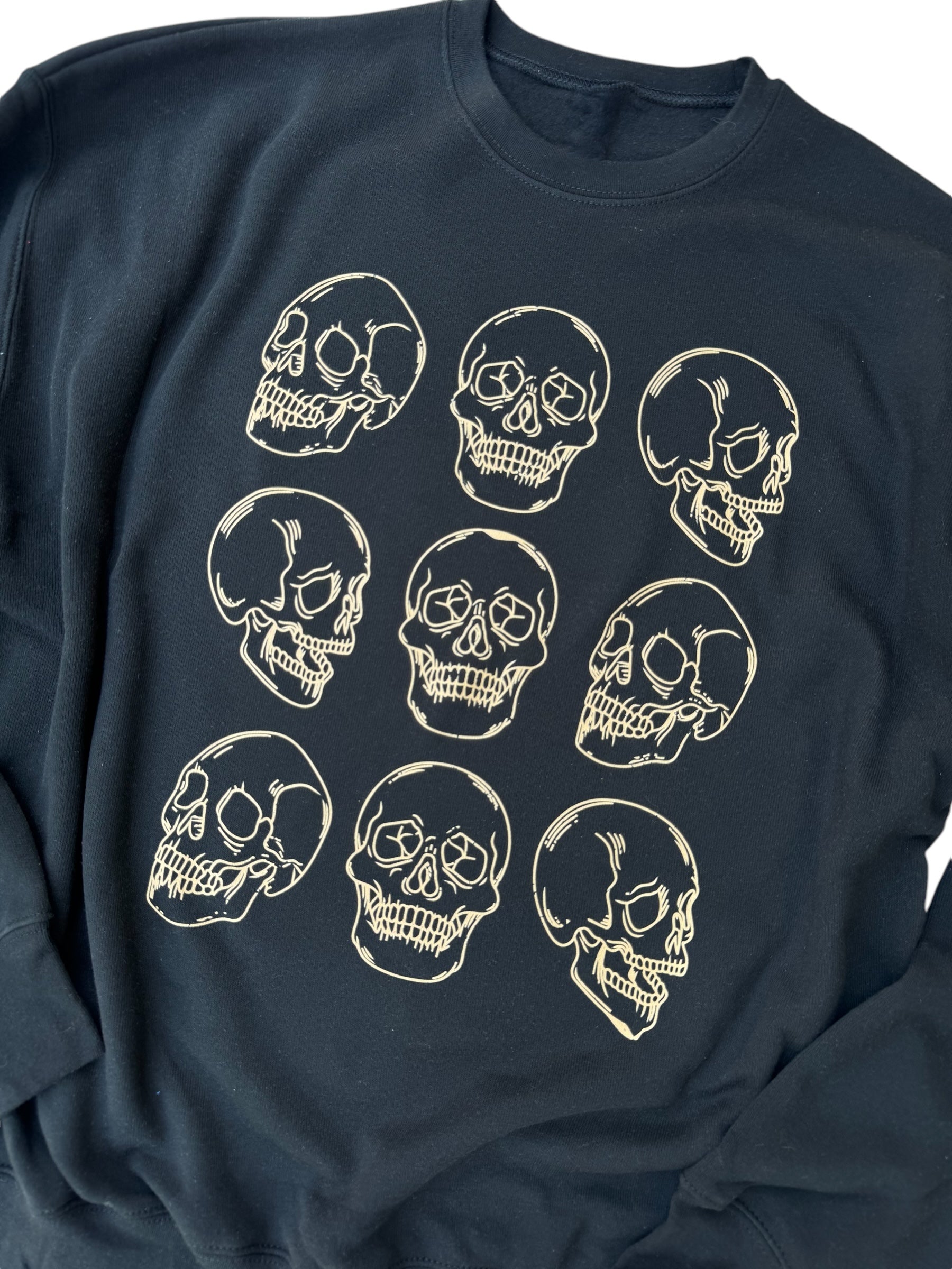 Introducing Skulls - the perfect shirt for those who love Halloween all year round! This skull-inspired shirt is a unique addition to any wardrobe, adding a touch of edginess and fun to any outfit. Don't wait for October to embrace your spooky side - wear Skulls and show off your love for all things creepy!